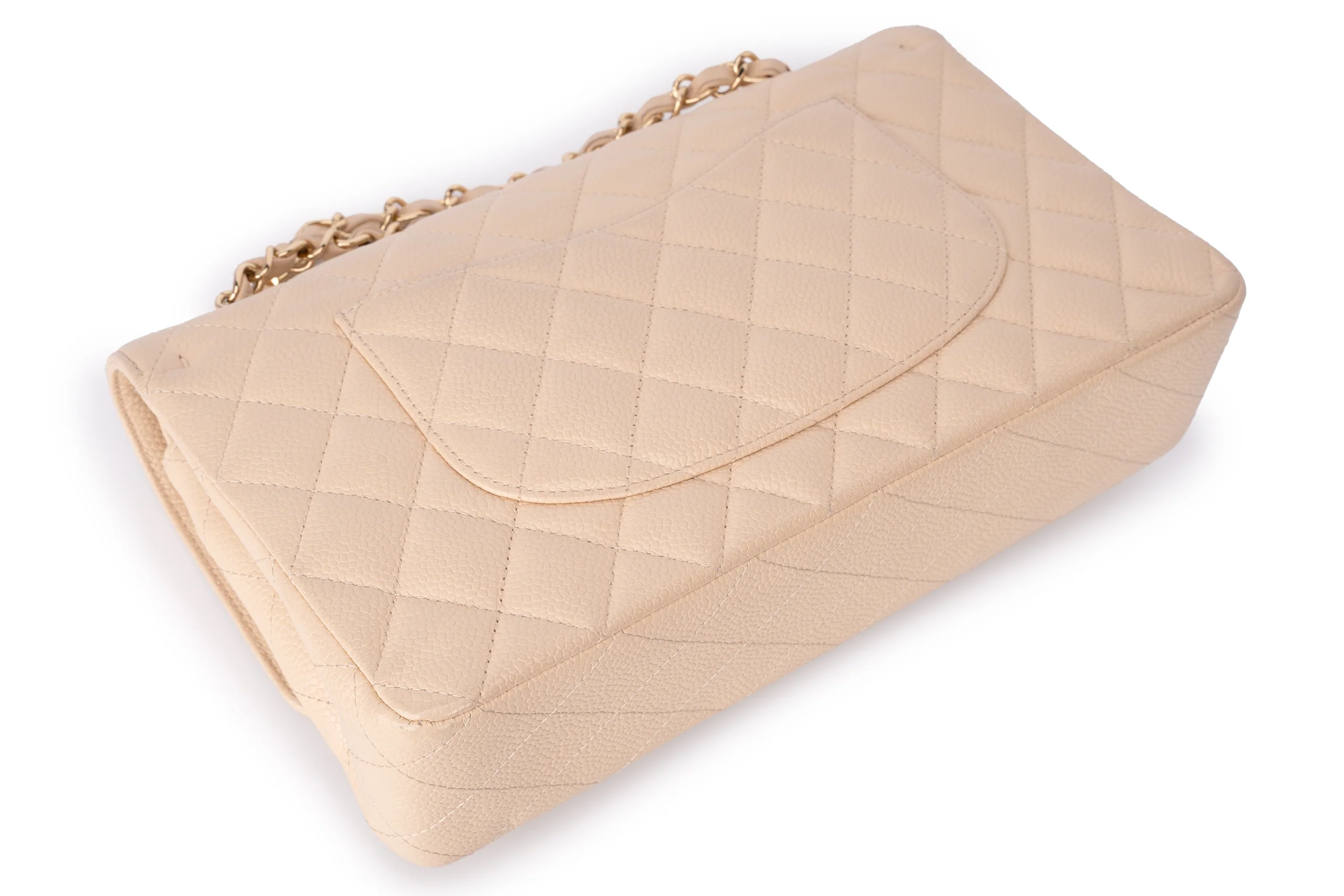 Chanel Med Classic Flap Caviar Beige GHW
