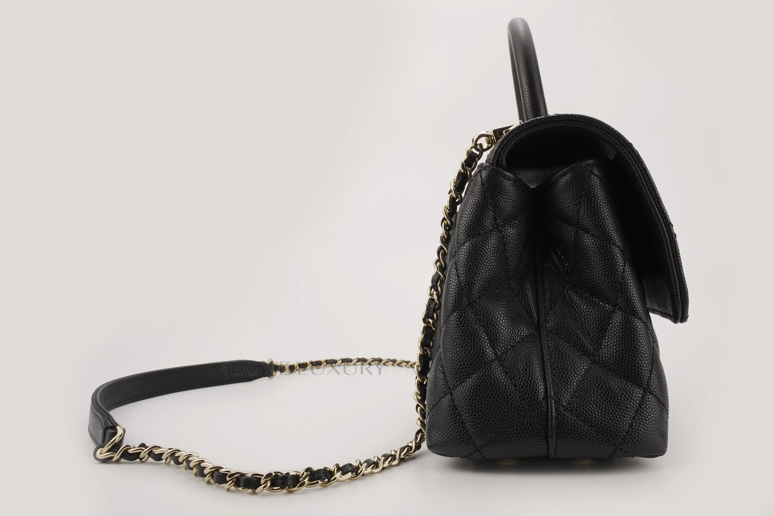 Chanel Small Coco Top Handle Flap Caviar Black Champagne GHW