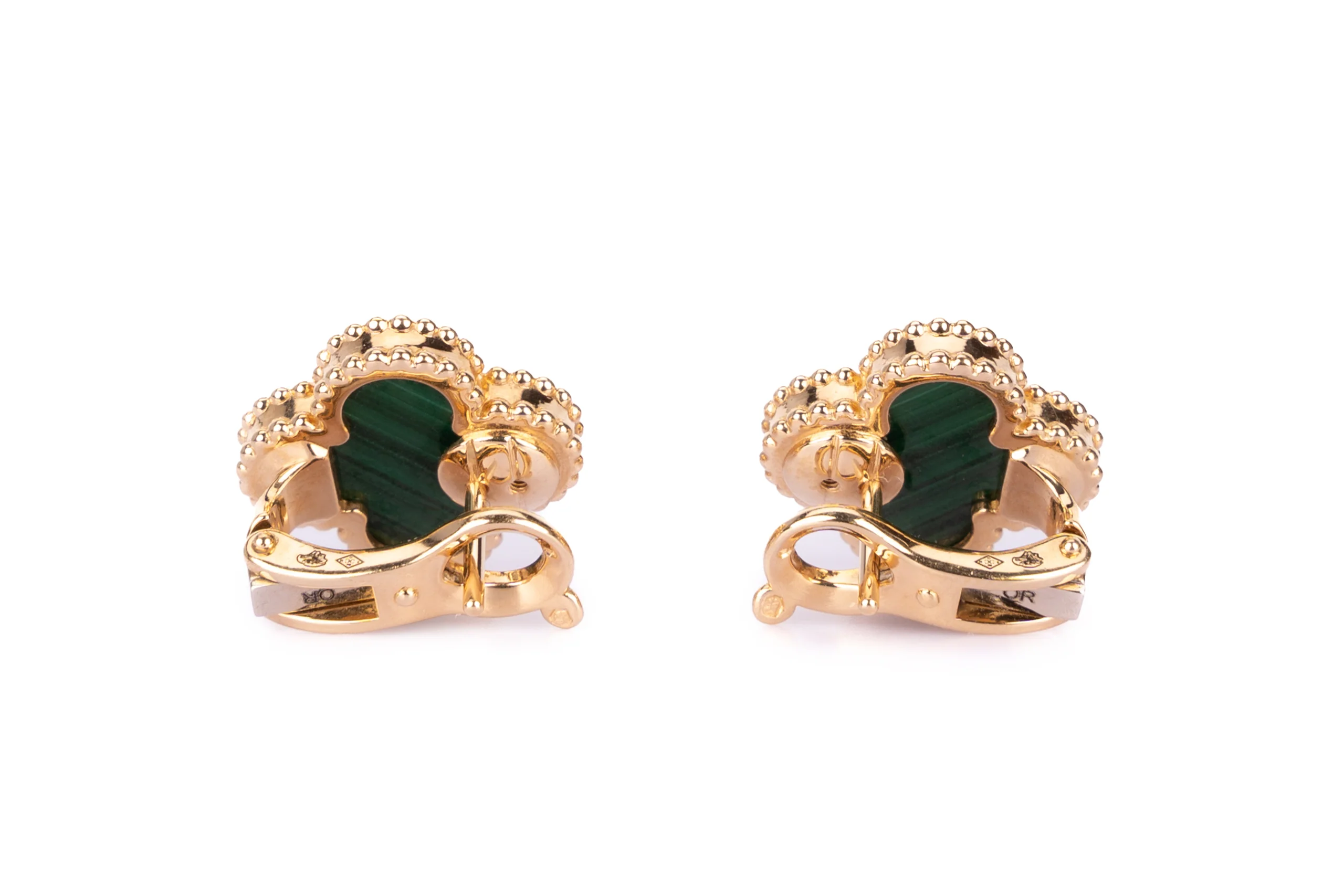 Van Cleef And Arpels Alhambra Vintage Earrings Malachite Yellow Gold